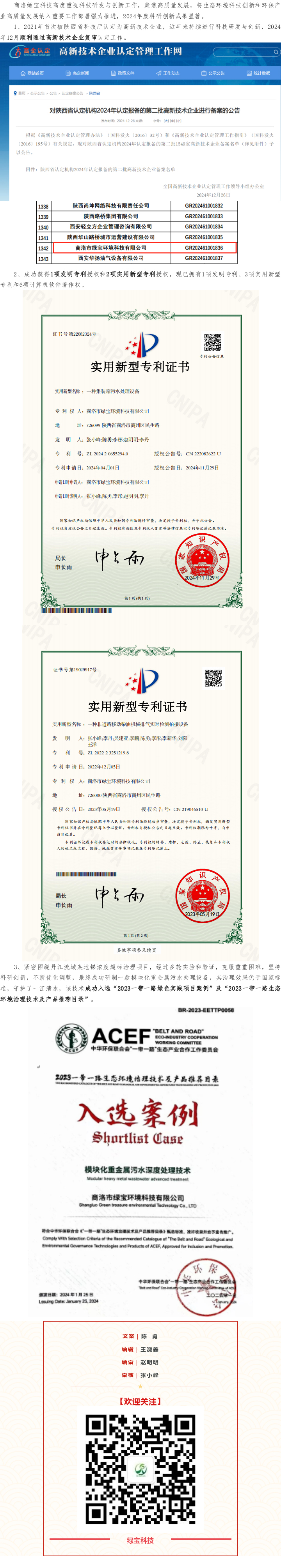 商洛绿宝科技高度重视科技研发与创新工作,聚焦高质量发展,将生态环境科技创新和环保产业高质量发展纳入重要工作部署强力推进,2024年度科研创新成果显著。